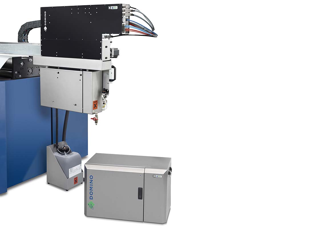 Printing on a wide range of substrates, the Domino K600i digital inkjet printer combines variable data printing and productivity with 600dpi print quality. When configured to the print width required, the K600i can be integrated into an existing web or sheet handling system for digital imprinting. The K600i can print high quality digital variable data, alpha-numeric text, a range of barcodes and 2D codes including the QR code as well as graphics, up to speeds of 200m/min.